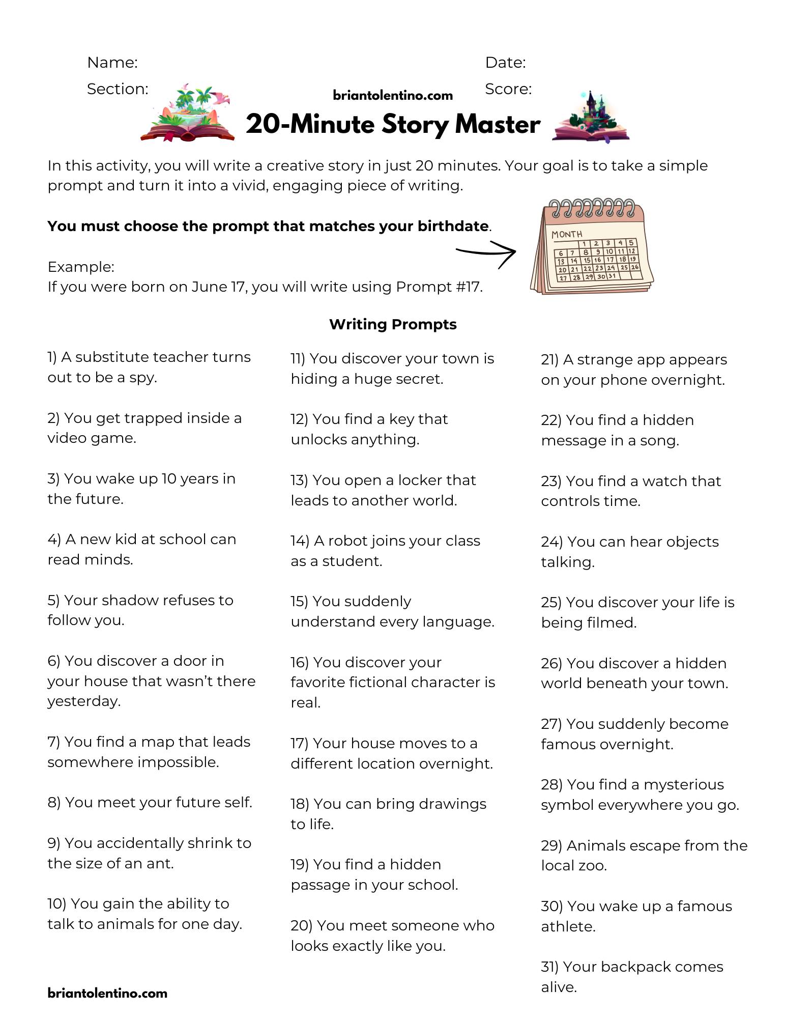 Hello Teachers, I’ve received many messages asking for creative writing prompts, so I decided to put together this post featuring 20 of my favorite prompts. I hope you enjoy them and find them useful in your classroom. If you do, please consider sharing the post with other teachers. Thank you so much for the support. Side note: When I send out emails like this, a lot of teachers click the link at the same time, which can temporarily slow down the website. If the page doesn’t load right away,...